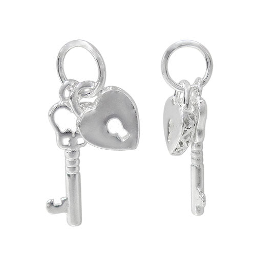 Sterling Silver smooth key & heart shaped lock charm with 7mm jump ring.