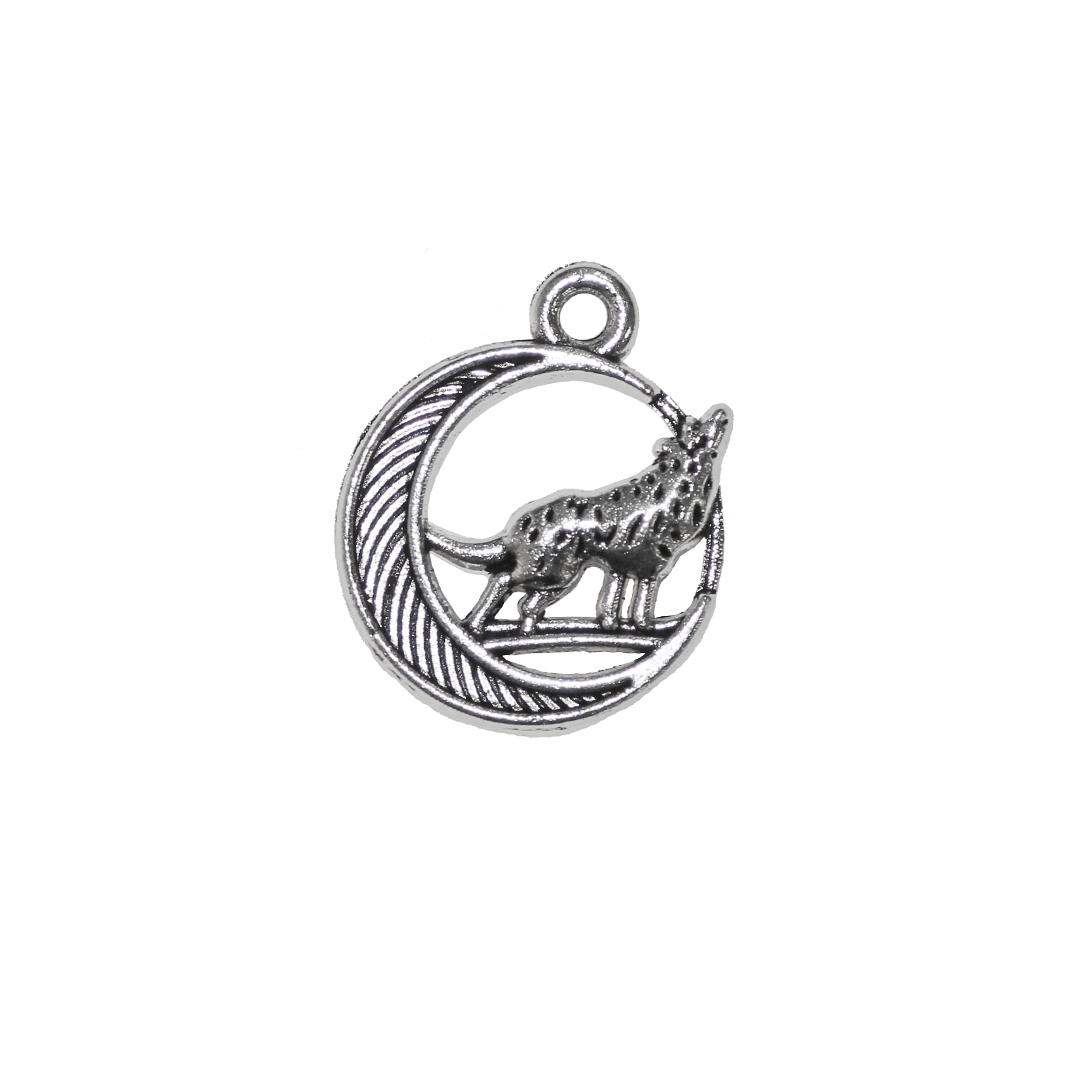 Charm, Moon & Wolf, Silver, Alloy, 14mm x 12mm x 2mm, Sold Per pkg of 20