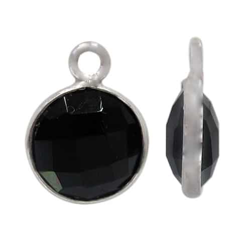 Rhodium plated on Sterling Silver, checkerboard cut, round-shaped stone charm with onyx. Color and size may vary.