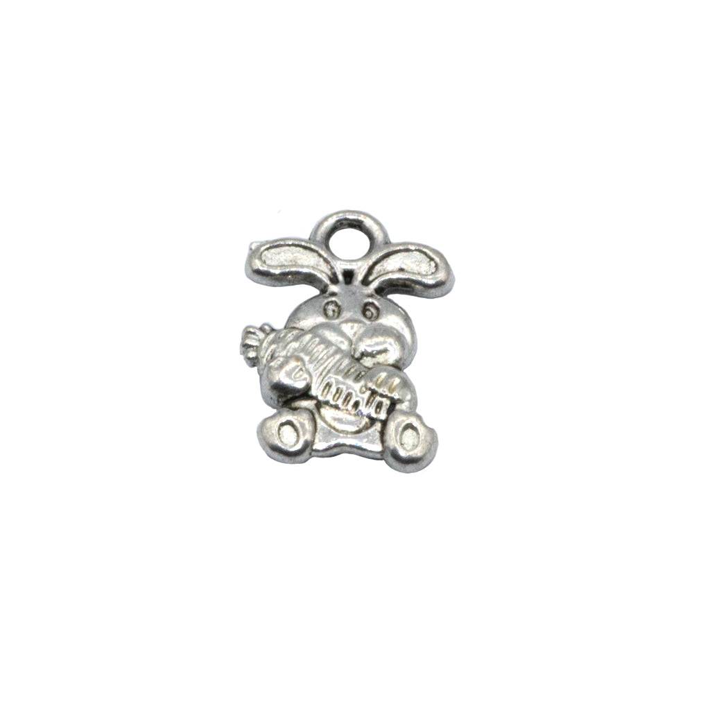 Charms, Bunny with Carrot, Silver, Alloy, 14mm X 10mm, Sold Per pkg of 12