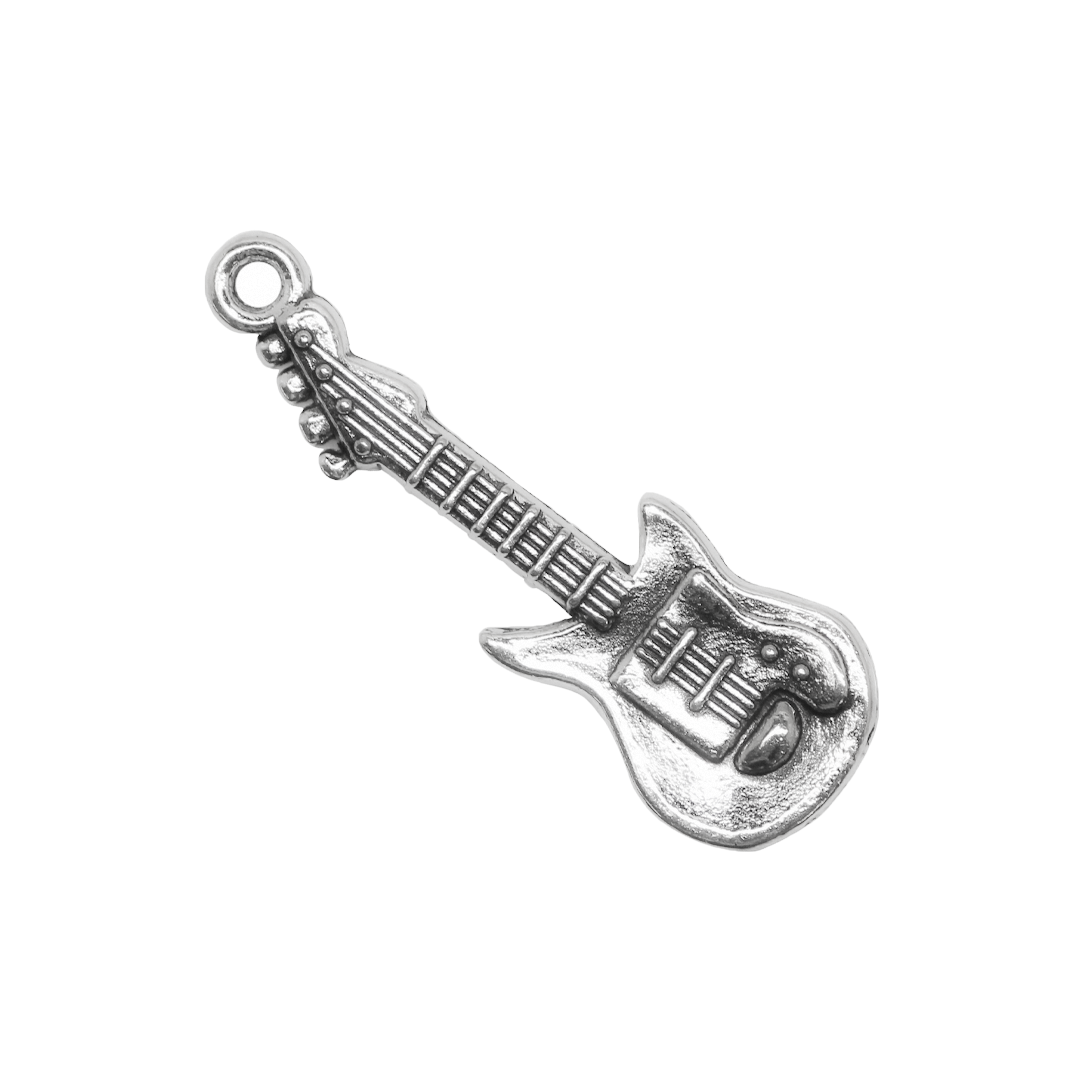 Charms, Guitar, Silver, Alloy, 30mm x 10mm x 1.5mm, Sold Per pkg of 10