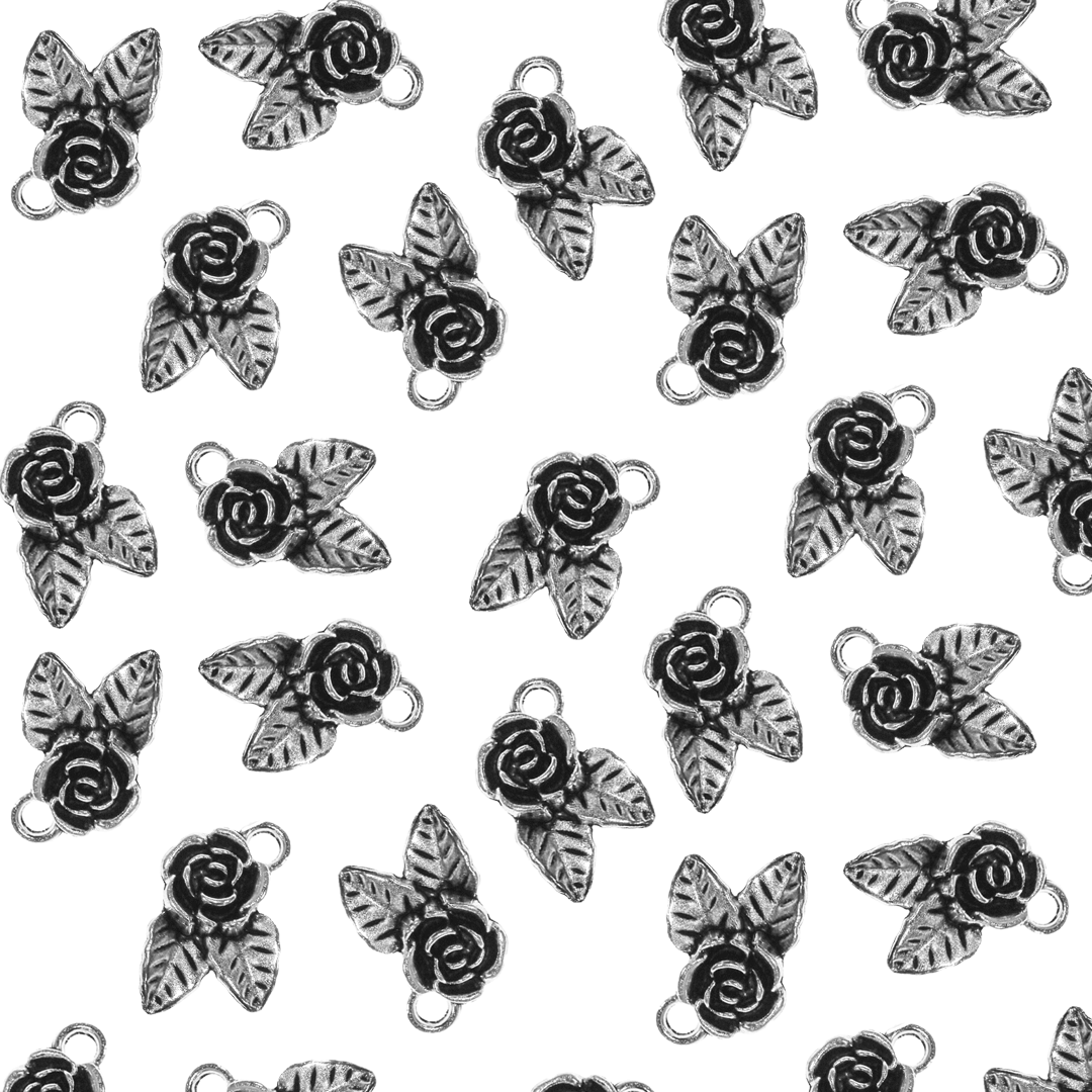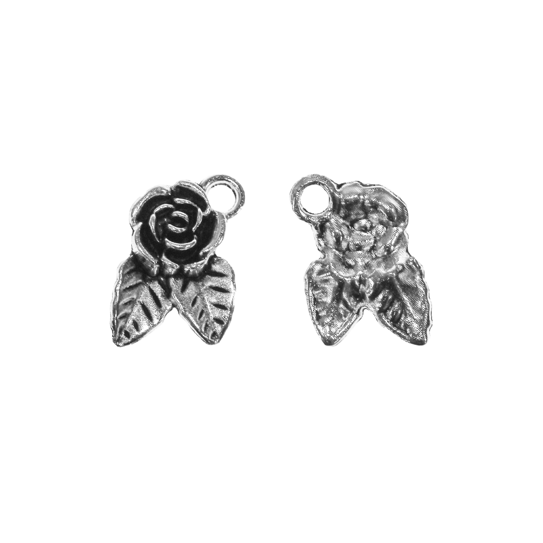 Charms, Rose with Leaves, Silver, Alloy, 15mm x 11mm x 3.8mm, Sold Per pkg of 15
