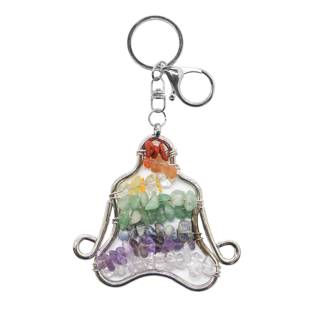 Keychain, 7 Chakra Buddha, Silver, Alloy, 10.5cm x 5cm, Sold Per pkg of 1