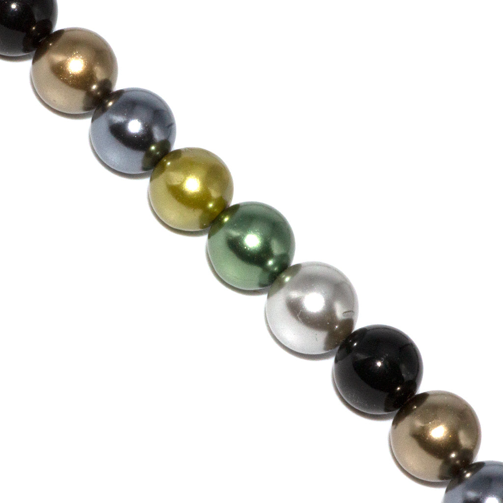 These beautiful Shell Pearls are made from the inner surface of oyster shells, also known as Mother of Pearl. The material is ground to a fine powder, shaped, dyed and coated with natural pearl layer and then a protective coating to formulate a shiny luster finish.