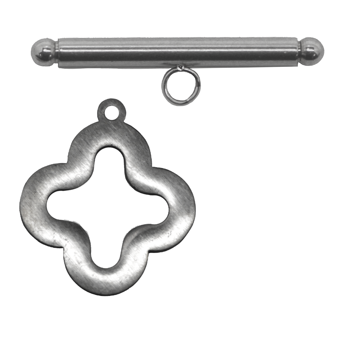 Clasp, Clover Toggle, Silver, Stainless Steel, 22mm x 20mm (Ring), 30mm x 7mm (Bar) - 1 Pair