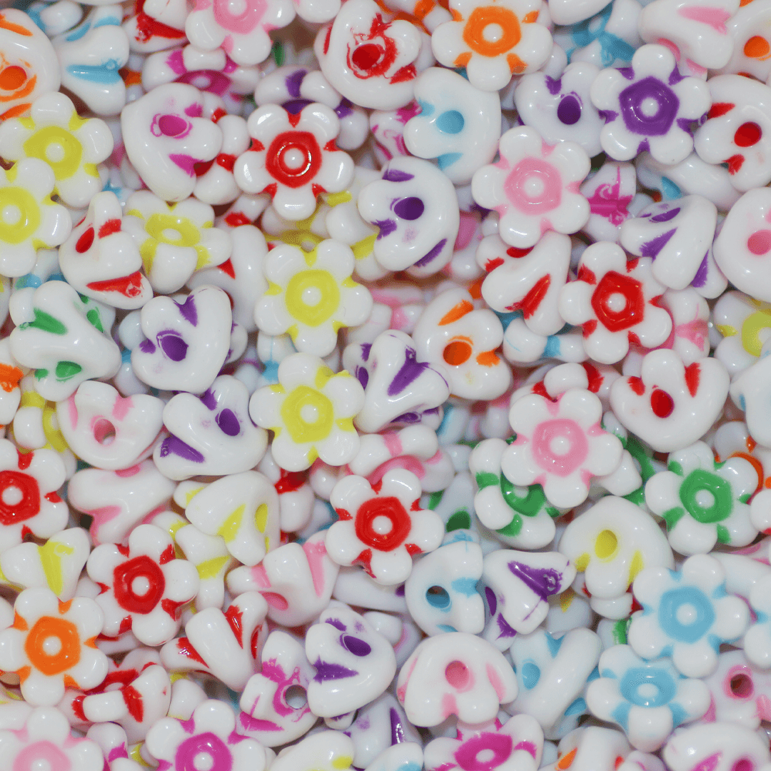Plastic Beads Bulk Bag, Flower, Assorted Colours, 10mm x 6.5mm, Sold Per pkg of Approx 600